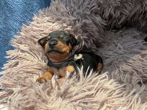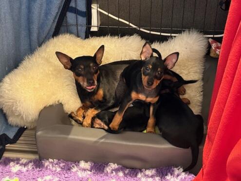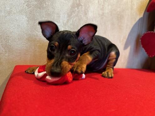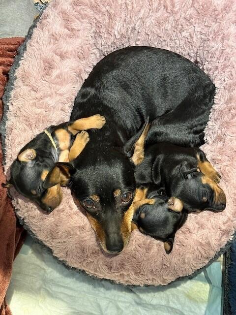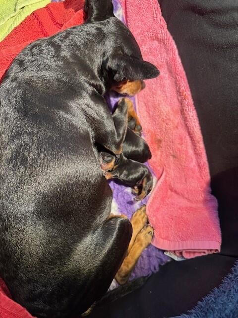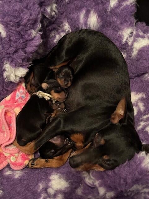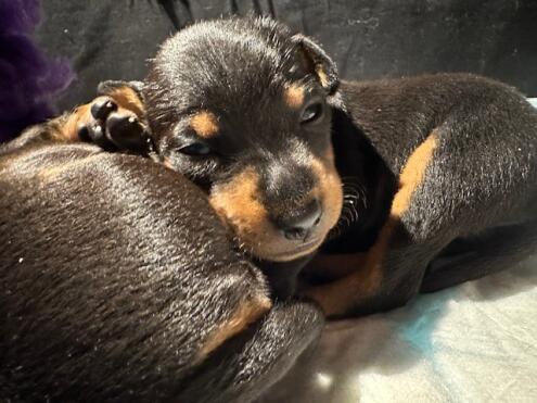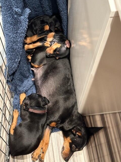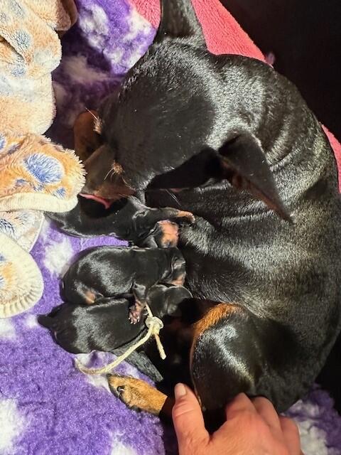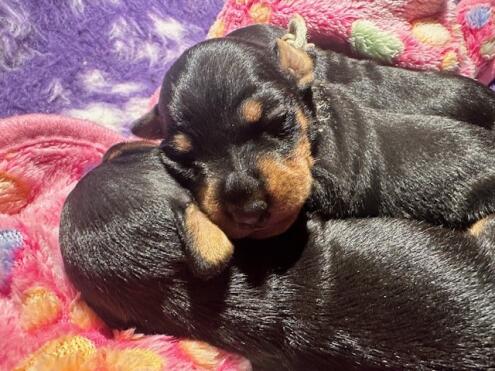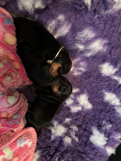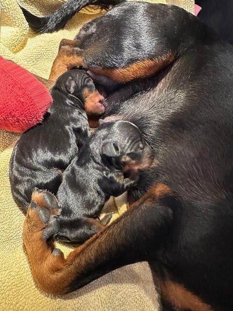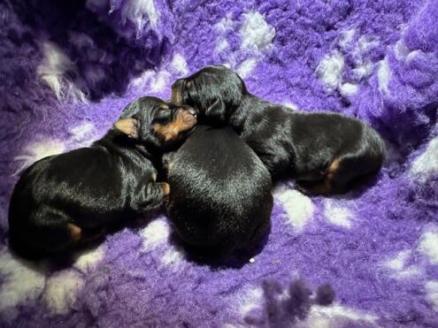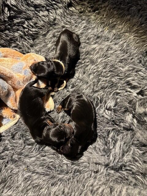 Det blev tre valpar. Två hanar och en tik. Alla tre black/tan.