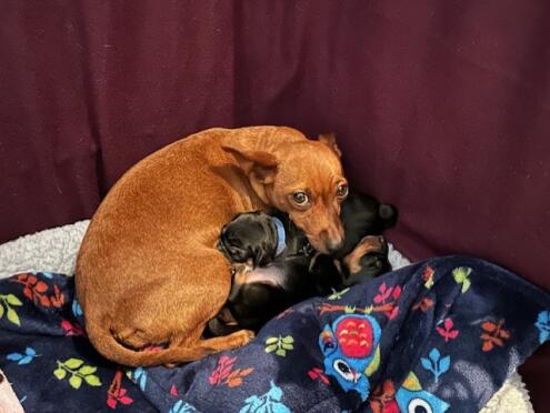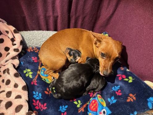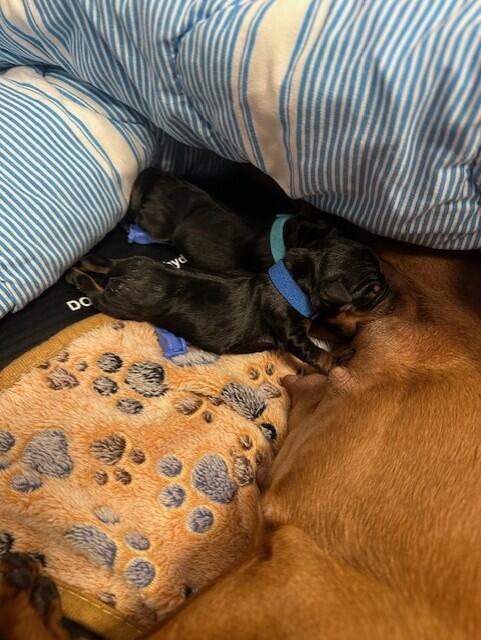 Fredag 9/5 nedkom Anjediamond`s Tesla med 2 fina friska pojkar av färgen black/tan. Pappa är Anjediamond`s Murtagh Fitzgibbon.
