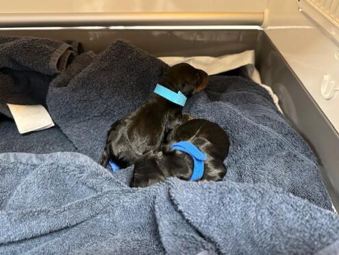Fredag 9/5 nedkom Anjediamond`s Tesla med 2 fina friska pojkar av färgen black/tan. Pappa är Anjediamond`s Murtagh Fitzgibbon.